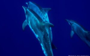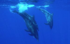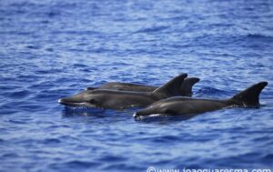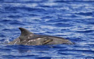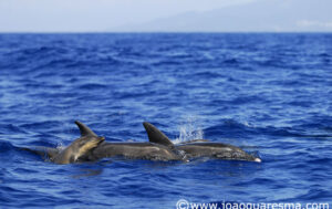 In August 2010, the Espaço Talassa team sighted a group of almost 50 rough-toothed dolphins south of Pico Island. This was a new record for us; the last time that this species was seen in the Azores was during the summer of 1995. The last sighting of this species, so far, occurred in late summer of 2016, when a group of about 20-40 rough-toothed dolphins was observed far offshore. The group was slowly surfacing close to the boat in tight formation and bowriding as the boats were moving slowly forward. The same group was encountered in the morning and afternoon trips on September 28th 2016.